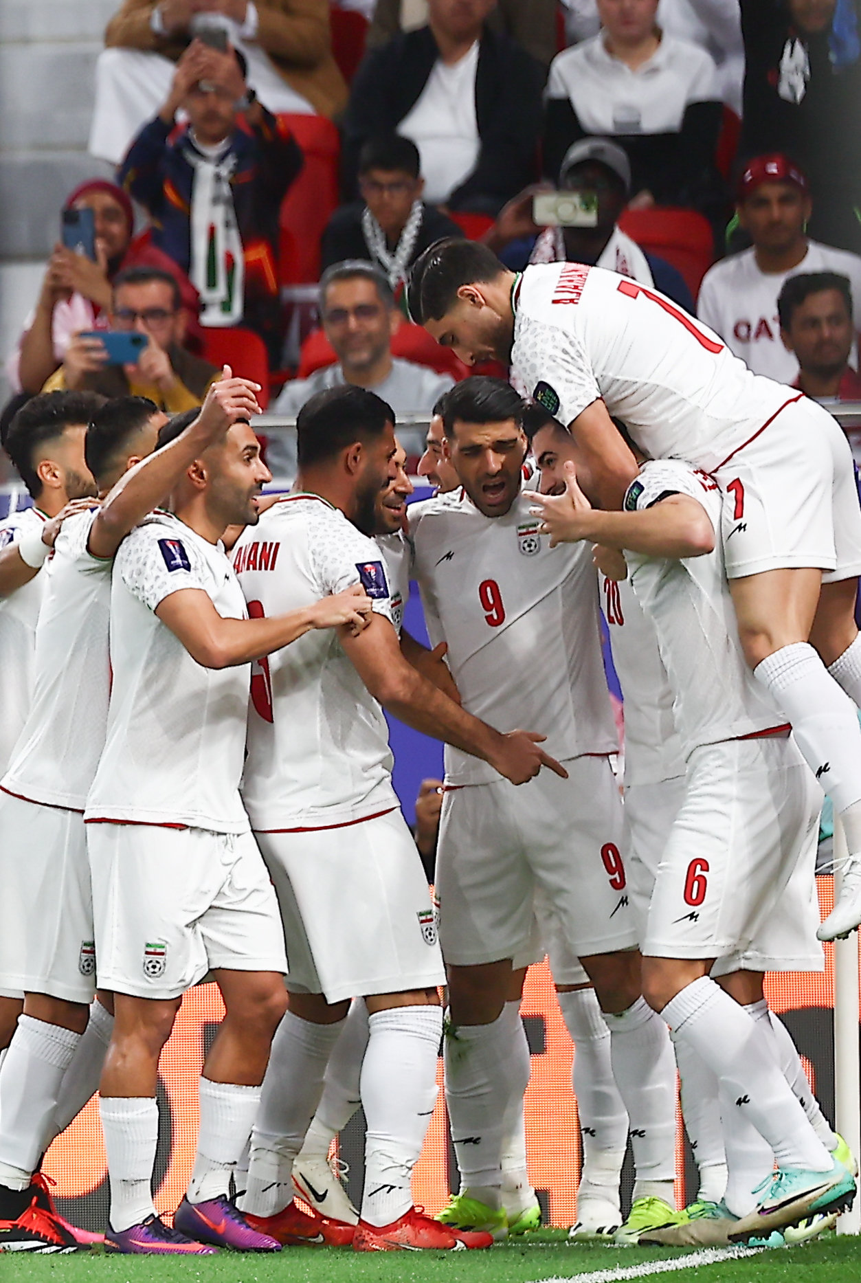 7일(현지시간) 카타르 도하 알투마마 스타디움에서 열린 아시아축구연맹(AFC) 2023 카타르 아시안컵 4강전 이란 대 카타르의 경기, 전반 이란 아즈문이 오버헤드킥 선취골을 넣고 기뻐히고 있다. 2024.02.08 도하(카타르)=뉴시스