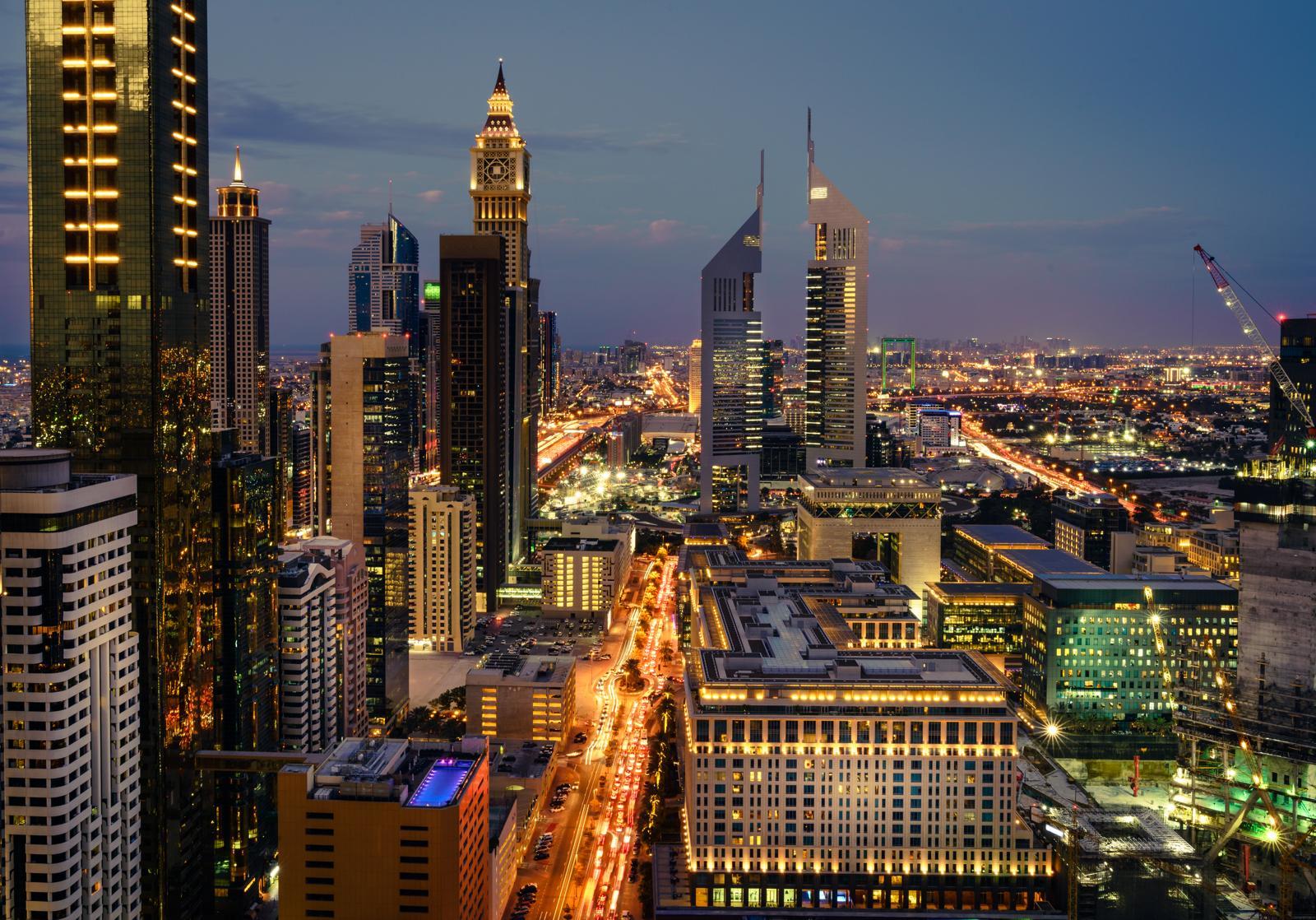 두바이 도심 전경. 금융·상업 지구를 관통하는 주요 도로에 차량 행렬이 이어지고 있다. 최근 미·이란 무력 충돌 격화로 두바이를 떠나려는 전세기 수요가 급증하면서 ‘탈출 비용’이 급등했다. 게티이미지뱅크