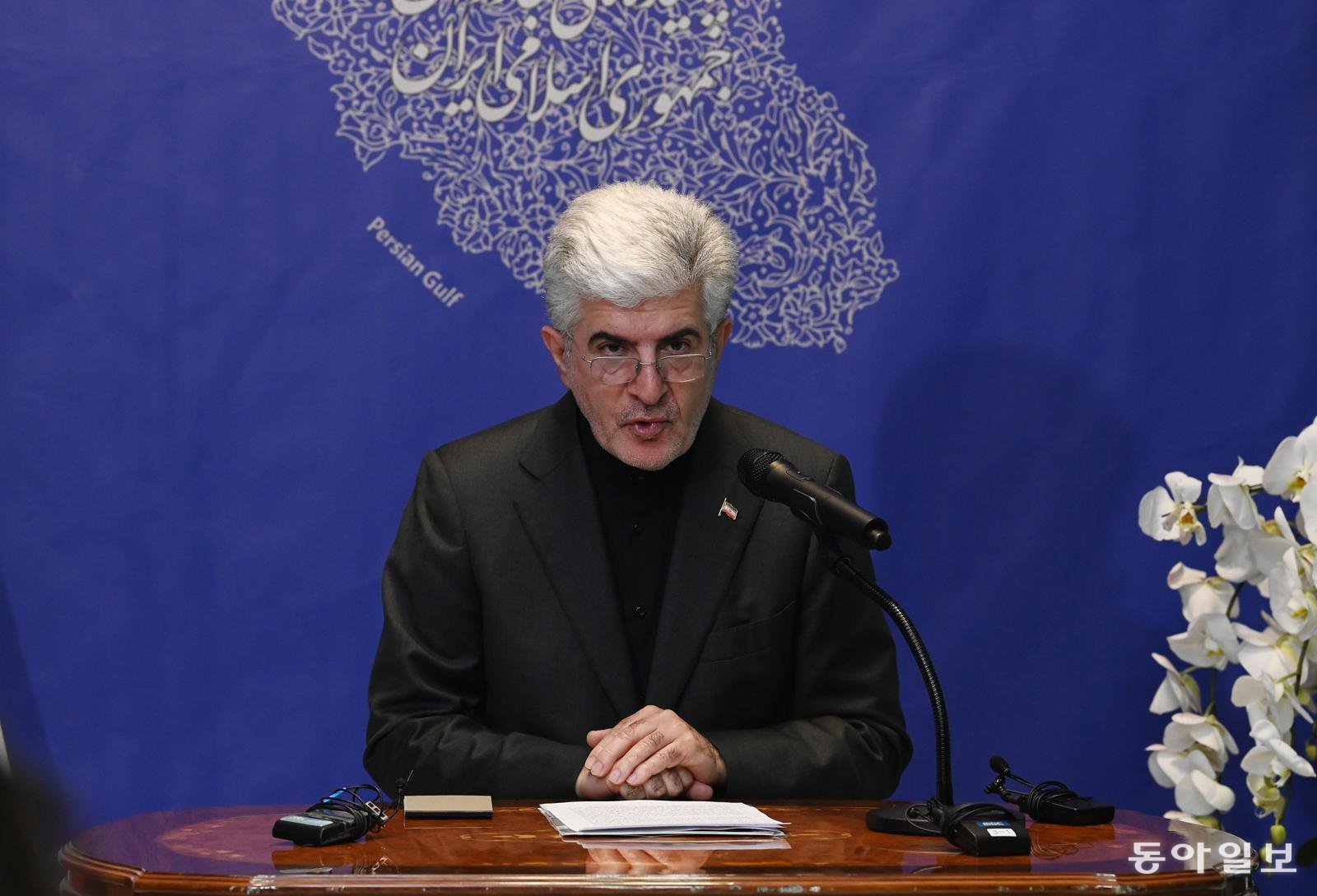 사이드 쿠제치 주한 이란대사가 5일 오전 서울 용산구 주한 이란이슬람공화국대사관에서 열린 이스라엘과 미국의 대이란 군사적 공격과 관련해 공식 입장을 밝히고 있다. 2026.03.05 양회성 기자 yohan@donga.com