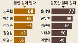12·3 비상계엄 이후 헌법재판소의 탄핵 심판으로 대통령직에서 파면된 윤석열 전 대통령이 역대 대통령 중 ‘잘못한 일이 많다’는 응답이 가장 높은 대통령으로 꼽혔다. 2021, 2023년 조사에서 1위였던 전두환 전 대통령을 앞선 것이다. 한국갤럽이 25∼27일 만 18세 이상 유권자…