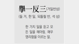 ● 유래: 논어(論語) 술이편(述而篇)에서 유래한 성어입니다. 공자는 제자를 가르칠 때, 그들이 주도적으로 깨달음을 얻도록 유도했습니다. “자기 스스로 알고자 애쓰지 않는 자에게는 가르침을 열어주지 않았고, 스스로 깊이 고민하지 않는 자에게는 답을 제시하지 않았으며, 한 모퉁이를 가르…