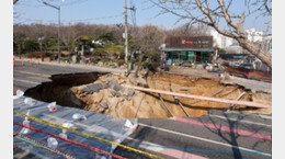 27일 오후 2시40분께 부산 서구 모지포 교차로에서 깊이 3m, 반경 5m 규모의 싱크홀(땅꺼짐)이 발생했다.이 싱크홀은 노후된 하수관이 수압을 견디지 못해 파열되면서 발생한 것으로 추정됐다.싱크홀은 순찰 중이던 경찰이 발견, 즉시 주변에 라바콘을 설치하고 교통을 우회시키는 등 안전…