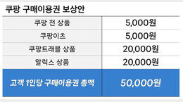 쿠팡이 3370만 명 대규모 개인정보 유출 사태 한 달여 만인 29일 1인당 5만원 상당의 이용권을 지급하는 내용의 보상안을 내놨지만 오히려 비판 여론은 커지고 있다. 5만원 가운데 소비자가 쿠팡에서 자유롭게 쓸 수 있는 금액은 5000원 뿐이다. 30일 국회 청문회를 하루 앞두고 나…