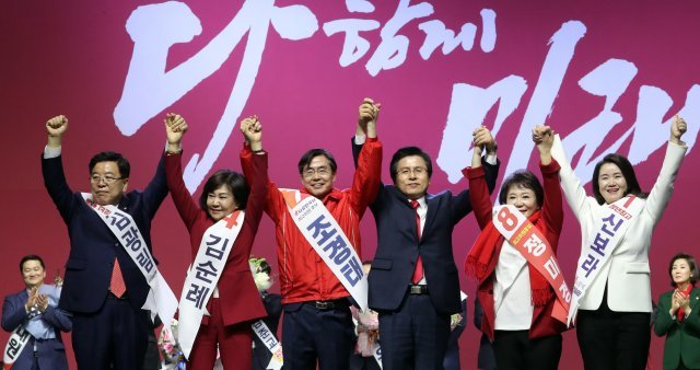 여론조사 전문기관 리얼미터가 tbs 의뢰로 지난 4~6일 전국 19세 이상 유권자 1512명을 대상으로 조사해 7일 공개한 3월1주차 주중집계(95% 신뢰 수준·표본오차 ±2.5%p)에 따르면, 자유한국당 지지율은 전주 대비 1.0%p 오른 29.8%로 2주 연속 상승했다.