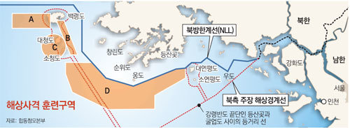 합동참모본부가 국립해양조사원 인터넷 홈페이지의 항행경보 코너에 올린 ‘2010년 11월 4주 해상사격계획 알림’에 따르면 군 당국은 연평도 서남쪽으로 길게 자리한 해상사격구역(지도의 D구역)으로 지난달 23, 24일 이틀간 오후 1시부터 5시까지 사격을 할 예정이었다. 하지만 23일 사격훈련 도중 북한이 포격 도발을 감행해 사격훈련이 중단됐다. 북한의 포격 도발 당시 군 당국은 연평도 외에도 서해 5도 가운데 대청도 서남쪽과 소청도 남쪽(C구역)에서도 사격훈련을 했다.