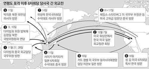 정부의 설명은 이렇게 요약된다. 중국은 김 위원장에게 “당분간 군사적 충돌을 만들지 말라”는 메시지를 전달했으며, 북한은 ‘희망적인 답변’을 내놓지 않았다는 것이다. 청와대 핵심 관계자는 “중국이 어느 정도 노력은 했지만 (북한에서) 우리가 바라는 근본적 변화의 신호는 듣지 못했다”고 설명했다. 북한 고위층은 다이 국무위원에게 “한국이 먼저 쐈다”는 ‘상투적’ 논리를 펴며 연평도 무력도발을 정당화한 것으로 정부는 파악했다. 그 고위층이 김 위원장인지는 확인되지 않았다.