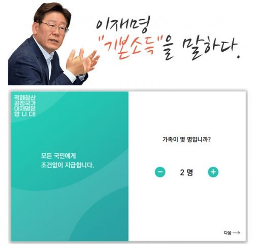 이재명 성남시장이 이른바 ‘기본소득 계산기’ 사이트(http://basic-income.gongjeong.net)를 15일 오픈했다. 기본소득은 대권에 도전한 이재명 시장이 내세우는 주요 공약이다.