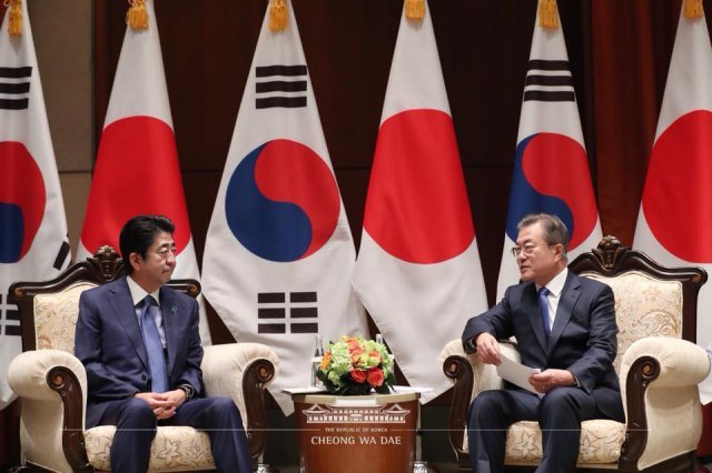 문재인 대통령이 아베 신조 일본 총리를 만나 화해치유재단의 사실상 해산을 시사하자 26일 정치권이 전반적으로 환영의 목소리를 내는 가운데 자유한국당은 한일관계를 고려해 신중해야 한다는 입장을 밝혔다.