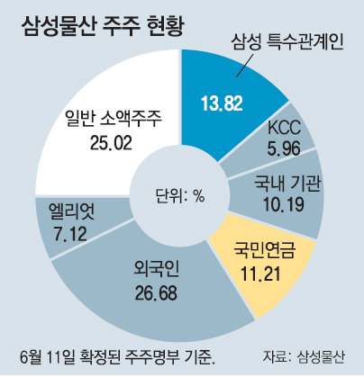 결국 제일모직과 삼성물산 간 합병의 ‘캐스팅보트’는 국민연금이 쥘 것으로 보인다. 국민연금은 의결권이 있는 삼성물산 주식을 11.21%까지 늘렸다고 이날 공시했다. 국민연금 관계자는 “지분 확대는 시장 상황에 따른 자연스러운 투자 활동일 뿐 특별한 정책 판단은 없었다”며 “조만간 기금운용본부 투자위원회에서 이번 사안을 의결권행사전문위원회에 올릴지를 결정할 것”이라고 말했다.