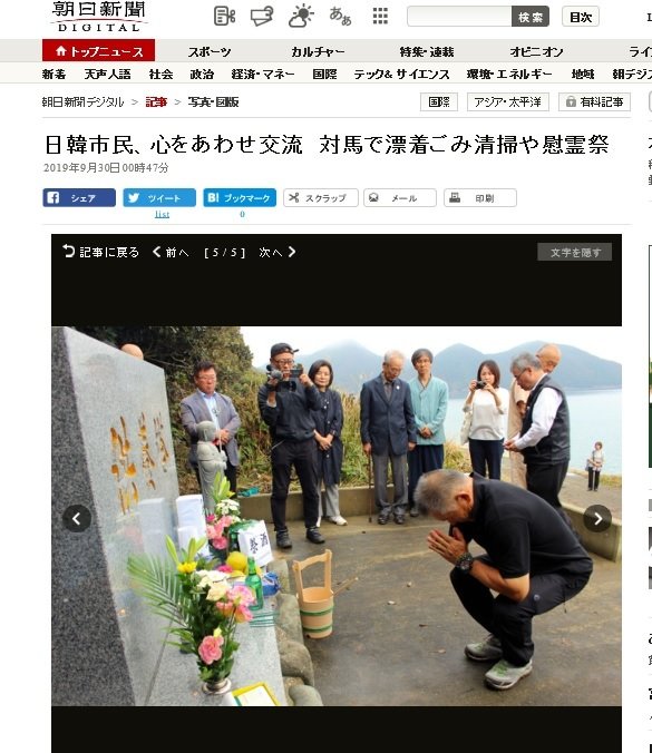또 같은날 쓰시마 북서부의 한 해안에서는 한일 시민들이 해안으로 떠밀려온 쓰레기를 함께 청소하는 행사인 ‘2019 한일시민 비치 클린업’이 개최하기도 했다.