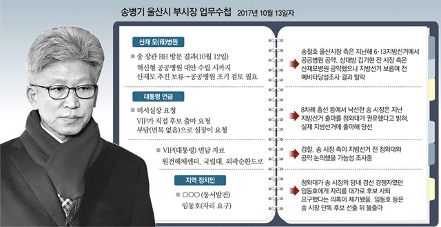 지난해 6·13지방선거 당시 송철호 현 울산시장의 전략 참모였던 송병기 울산시 경제부시장의 업무수첩이 ‘청와대 하명(下命) 수사 의혹’ 사건의 뇌관으로 떠올랐다.