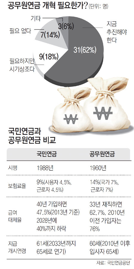 한 지방소재 대학 교수는 “박정희 전 대통령이 공무원연금 사학연금 군인연금 도입으로 충성심을 확보했다”며 “박근혜 정부가 직역연금을 개혁하면 공무원이나 군인의 강한 반발이 예상된다”고 내다봤다.
