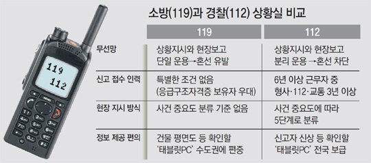 경찰은 이 같은 문제를 방지하기 위해 112 상황실과 현장 경찰이 쓰는 망을 분리하고 있다. 신고 접수 내용을 시시각각 현장에 전파하고, 출동 경찰관들의 보고를 제대로 받기 위해서다.