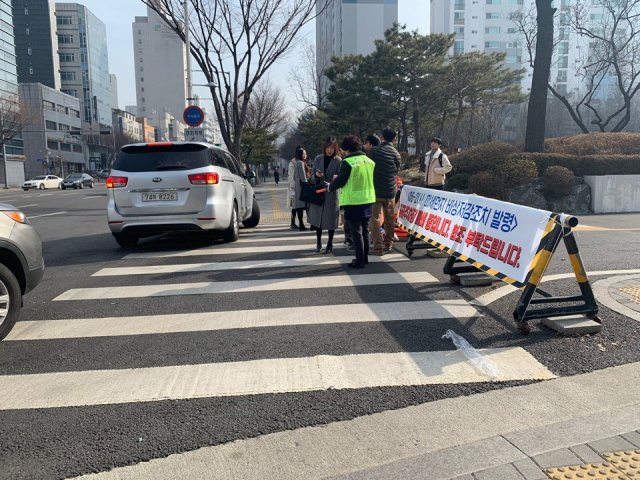 오전 9시30분 서울 강남구청 앞. 이곳 정문 자동차 진입로에는 바리케이트가 있었다. 한쪽에는 ‘미세먼지 비상저감조치 발령으로 공공주차장 폐쇄 중’이라는 내용의 플래카드도 있었다. 손에 형광봉을 든 주차관리 요원들은 민원인에게 팸플릿을 나눠주며 대체 주차장을 안내했다.