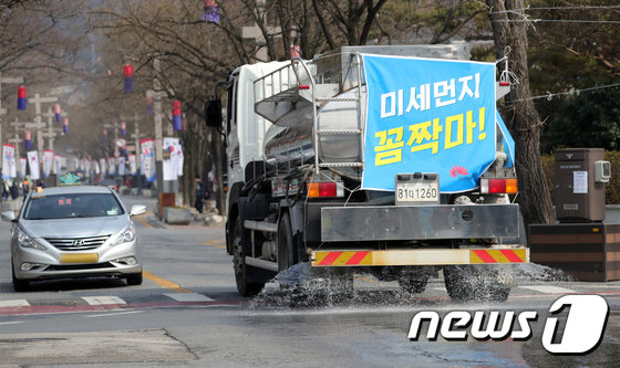 전주시는 미세먼지 농도가 최악의 상황인 만큼 7일까지 살수차를 동원해 도로에 물을 뿌리고 있다.