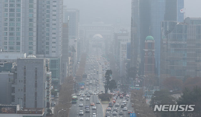 환경부 산하 국립환경과학원에 따르면 19일 오후 5시 기준 서울 지역의 하루 평균 초미세먼지(PM-2.5) 농도는 41㎍/㎥를 기록했다. 이는 ‘나쁨’(36~75㎍/㎥) 단계에 해당한다.