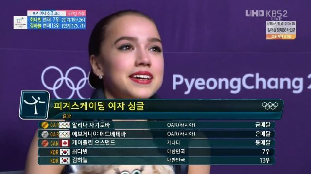 16세의 ‘러시아 출신 올림픽 선수’(OAR) 알리나 자기토바가 평창 ‘피겨 퀸’ 자리를 차지했다.