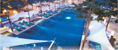 호텔에서 보내는 하루는 서울 도심 속 일상의 시간을 포스트모던하게 만드는 측면이 있다. 새하얀 침구, 번쩍이는 운동시설…. 올해 5월 서울 중구 장충동에 문을 연 반얀트리 클럽 앤드 스파 서울은 멤버십 회원 전용 공간이지만 호텔 투숙객에겐 회원과 똑같은 혜택을 제공한다. 이 호텔 야외 수영장 ‘오아시스’에는 일광욕을 즐길 수 있는 200개의 선베드와 미니풀이 딸린 방갈로 형태의 휴식 공간인 ‘카바나’가 23개 있다. 사진 제공 반얀트리 클럽 앤드 스파 서울