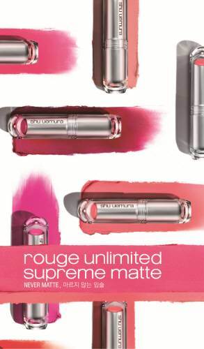 글로벌 코스메틱 브랜드 슈에무라에서 ‘루즈 언리미티드 슈프림 마뜨’의 기존 9가지 색상 외에 새로운 15가지 색이 나왔다. 루즈 언리미티드 슈프림 마뜨는 크림 타입의 립스틱으로 부드럽게 발린다는 게 슈에무라 측의 설명이다. 기존 라인에서는 볼 수 없었던 차분한 와인 계열 색상은 물론 레드 오렌지 핑크 코랄 계열 등이 추가돼 색상 스펙트럼이 다채로워졌다. 이른바 ‘강남핑크’로 유명한 푸시아 핑크(PK376)와 오렌지 레드(RD144), 딥 레드(RD187), 핑크 코랄(CR344)이 인기를 끌 것으로 보인다.