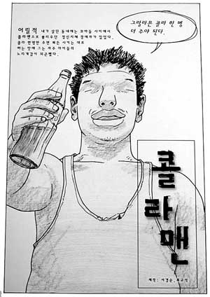 ▽극화(심사위원단)〓대상을 수상한 ‘콜라맨’은 여러 심사위원의 기준을 동시에 충족시키는 완성도 높은 작품이었다. ‘콜라맨’은 풍부한 드로잉 실력을 기반으로 평범하지만 안정적이며 독창적인 미장센을 보여준다. 아직 젊은 나이인데도 독창적인 스타일을 만들어 냈고 이야기도 상투성을 벗어났다.