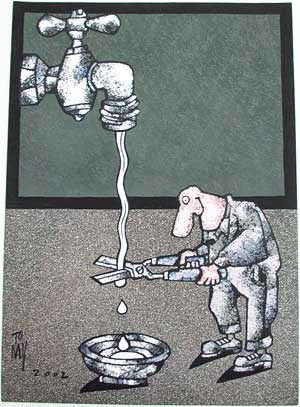 떨어지는 물줄기를 커다란 가위로 잘게 자르는 이미지로 물 부족 현상을 설명한 이 작품은 수많은 신문과 방송 보도가 몇 달에 걸려 할 수 있는 일을 단 한 번에 해냈다는 평가를 받고 있다.