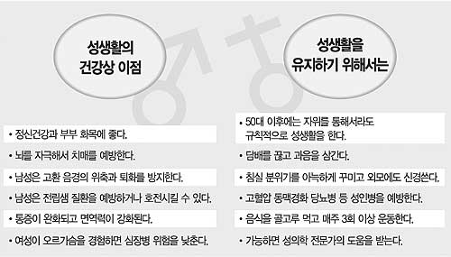 하 원장은 “부부간에 직접적인 성관계가 어렵더라도 접촉이나 애무, 키스 등 이른바 ‘대안 성행위’로도 충분히 사랑을 확인할 수 있다”고 강조했다.