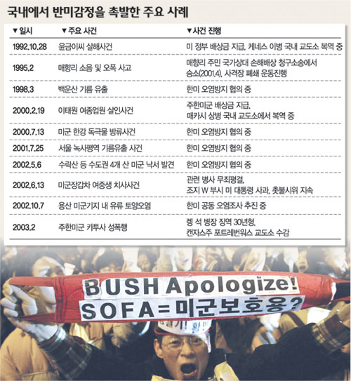 실제로 한국 사회에선 친미와 반미 사이의 스펙트럼이 넓고, 어느 쪽에도 치우치지 않는 사람이 많다. 그러나 지난해 6월 미군 장갑차 여중생 치사사건을 계기로 광범위하게 표출되기 시작한 대미 평등 주장은 6·25전쟁 이후 50년간 지속되어온 한미동맹이 이제 새 국면에 접어들었음을 보여준다.