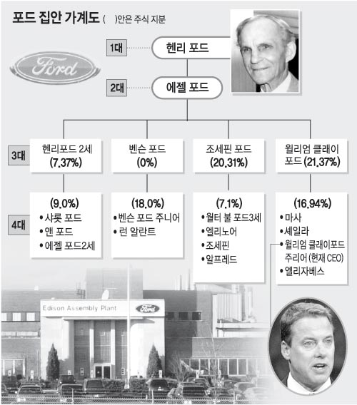 ‘자동차왕’ 헨리 포드가 설립한 포드사가 한 예. 포드는 1956년 회사를 공개한 이후 지금까지 모두 7명의 최고경영자(CEO)가 있었는데, 헨리 포드 2세와 현 회장인 윌리엄 클래이 포드 2세가 창업자 가족 출신 CEO다.