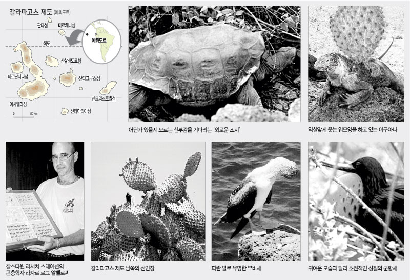 ▽‘자연 박물관’의 위기=갈라파고스는 500만∼300만년 전 생성된 것으로 추정되는 화산섬. 남미 대륙 서쪽 해안에서 1000km나 떨어져 있어 에콰도르에서 비행기로 꼬박 3시간을 가야 한다. 100여개의 섬 중 사람이 사는 섬은 4개. 총 인구는 1만8000여명이다.