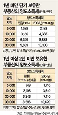 또 투기지역보다는 비(非)투기지역의 부동산을 먼저 파는 게 낫다. 투기지역에서는 양도세가 실거래가를 기준으로 부과되기 때문에 비투기지역보다 세금 부담이 30∼40% 늘어난다.