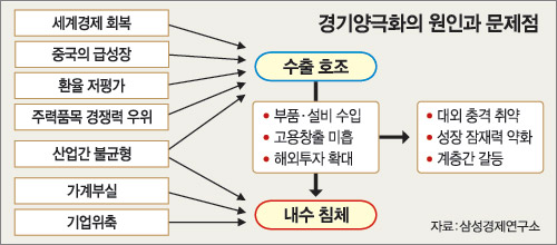 실제로 삼성전자 수원공장 생산현장의 즐거운 비명과 달리 주변의 상가는 매출이 격감하고 가게를 내놓는 상인이 속출하는 등 경기 양극화의 단면이 여실히 드러났다.