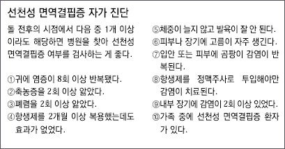 ▽선천성 면역결핍증이란=정상인이라면 항체를 만들거나 균을 잡아먹는 등 면역기능을 갖추고 태어난다. 그러나 10만명당 1명꼴로 그렇지 않은 상태로 태어난다. 이를 선천성 면역결핍증이라고 한다. 70여 종이 있으며 그 중 ‘항체면역결핍증’이 가장 많다.
