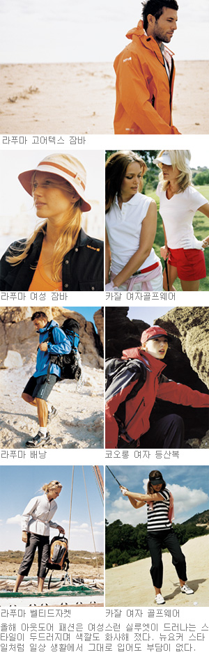 여성의 아웃도어 스포츠 참여가 늘어나면서 아웃도어 패션의 여성화가 두드러진다.