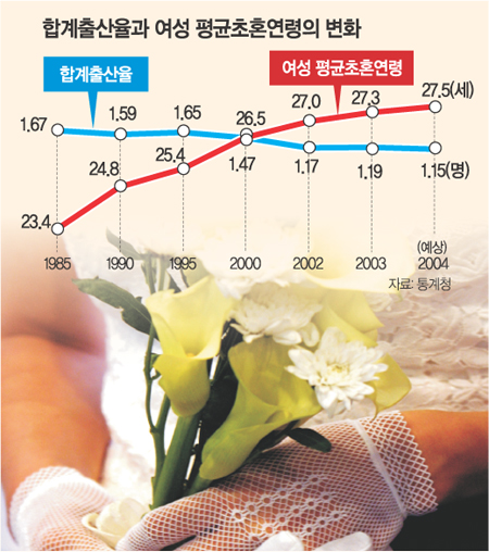 ‘2003 전국 출산력 조사’를 진행한 보건사회연구원 김승권(金勝權) 연구위원도 “결혼연령의 상승, 높은 미혼율이 출산율 저하의 가장 큰 요인이라는 점을 감안한다면 약 20년간 유지되고 있는 현재의 저출산 기조는 바꾸기 어려울 것”이라고 내다봤다.