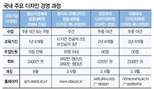 홍익대와 성균관대, 이화여대도 디자인대학원에서 디자인경영 과정을 운영하고 있다.