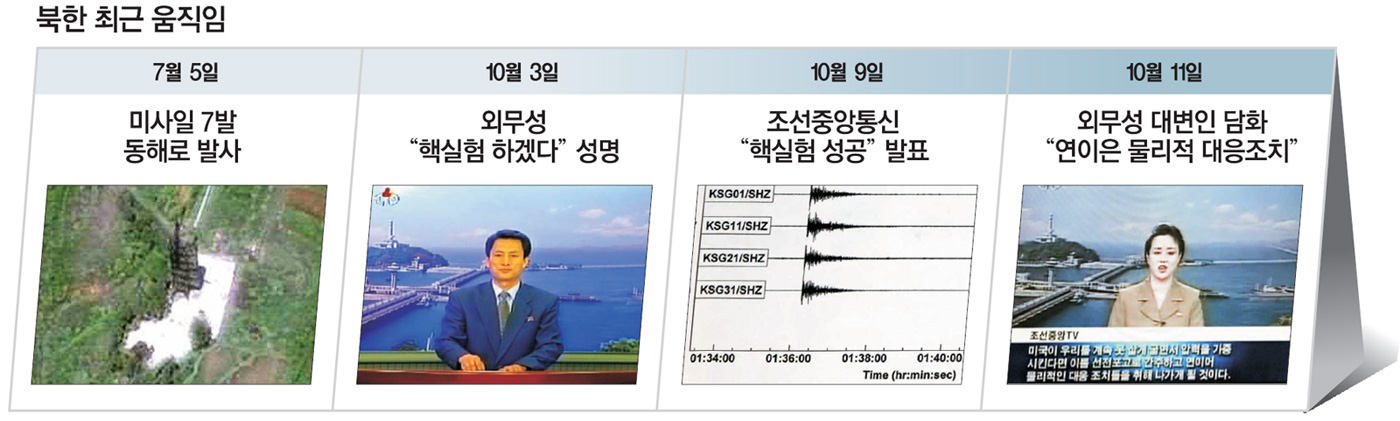 《미사일 발사와 핵실험 이후 북한은 조급한 반응과 일방통행적인 행동에만 나서고 있다는 게 북한문제 전문가들의 분석이다. 1994년 1차 핵위기 때 북한이 ‘벼랑끝 전술’을 사용하면서도 위기고조행위와 대화를 병행하며 제네바 합의에 이르렀던 때와는 다르다는 것. 이 때문에 일각에서는 국제사회의 반응과 무관하게 핵실험을 하지 않으면 안 될 정도의 체제위기에 준하는 ‘특단의 사정’이 북한에 생긴 것 아니냐는 분석이 나오고 있다.》