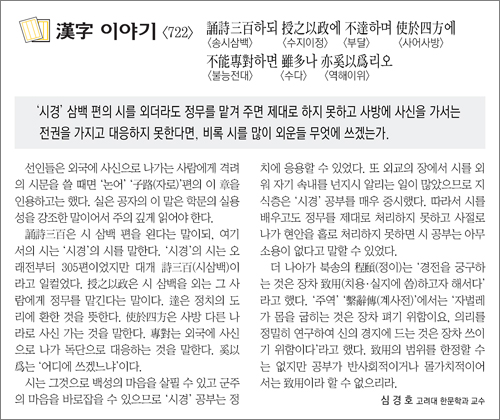 [한자 이야기]<722>誦詩三百하되 授之以政에 不達하며…