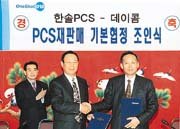 두회사는 2일 ‘개인휴대통신(PCS) 무선재판매 사업 협정’을 맺고 데이콤은 4월부터 한솔PCS로부터 값싸게 통신용 주파수와 시설을 빌려 쓰면서 가입자를 확보해 PCS영업을 하고 여기서 나온 수입을 절반씩 나눠 갖기로 했다.