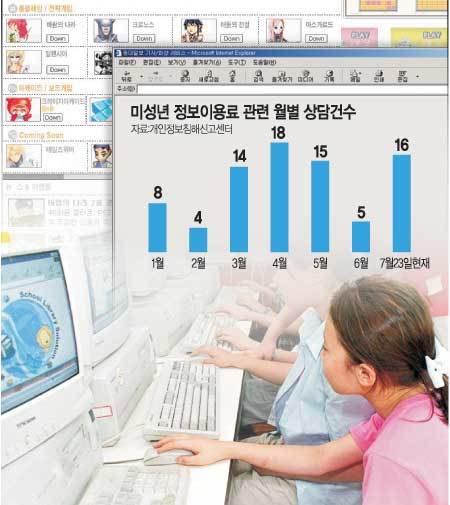 미성년 자녀들의 인터넷 게임사이트 이용이 늘면서 부모들의 고민도 커지고 있다. 전화요금보다 몇 곱절이나 많은 정보이용료를 추가로 물어야 하는 사례가 잦아졌기 때문.