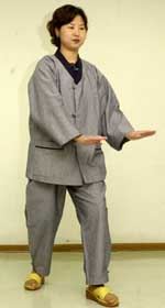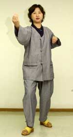 <<사진의 동작은 시를 수련하는 방법 중 '오행장'이다. 오행장은 오장육부를 건강하게 만들어주는 기체조. 숨을 들이쉴 때는 우주의 맑은 기를 받아들인다고 생각하고 내 쉴때는 몸 속의 나쁜 기를 내뱉는다고 생각한다. 각 동작은 3~9번 실시한다.>>