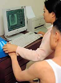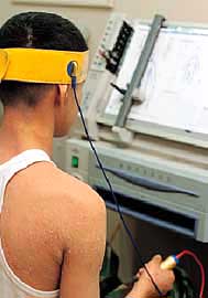 | 인체의 음양(陰陽)·한열 (寒熱)·표리(表裏)·허실(虛實) 등의 상태를 측정하는 ABR 시스템. 아토피성 피부염 환자들의 증상을 보다 세밀히 파악하기 위한 장치다. |