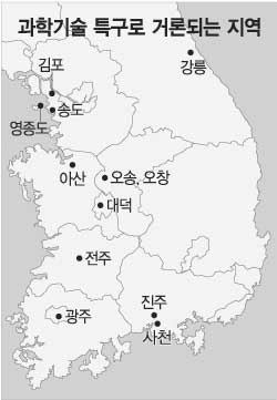 과기부는 새로운 첨단산업단지보다는 이미 조성이 끝난 단지의 연구개발을 활성화하는 데 역점을 두고 특구를 지정한다는 방침이다. 현재 과학·기술·연구를 표방하는 단지는 11개. 이 중 과기부가 검토 중인 특구 지정 요건에 해당하는 100만㎡ 이상의 단지, 분양률 30% 이상인 단지는 대덕연구단지, 광주첨단단지, 오송의료산업단지/오창과학산업단지, 아산테크노컴플렉스단지, 전주첨단과학산업단지 등 6곳이다.