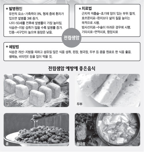 일본 대표를 맡고 있는 쓰쿠바(筑波)대 아카자 히데유키(赤座英之) 교수도 “전립샘암을 예방하려면 콩이나 콩을 원료로 한 식품, 가령 된장으로 만든 것을 많이 먹는 게 좋다”고 말했다. 아카자 교수는 이 밖에도 비타민E, 셀레늄 등이 전립샘암 예방에 좋은 영양소라고 말했다.