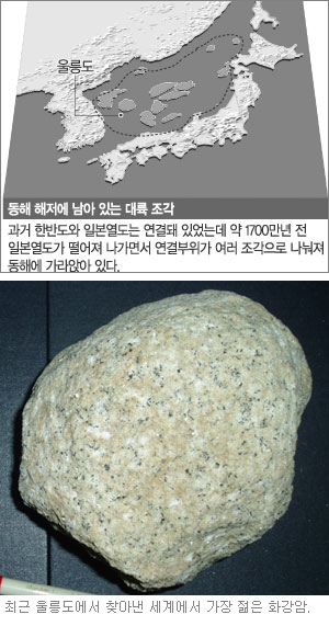 지질학계에 따르면 약 3000만년 전 한반도 동해안과 일본 서남해안은 붙어 있었다. 그런데 약 1700만∼1500만년 전 지각변동에 의해 대륙판들이 서로 밀어내 일본열도가 한반도로부터 떨어져 나가면서 지금의 동해가 생긴 것. 현재 동해 속에 가라앉아 있는 돌출 부위가 과거 한반도와 일본열도 사이에 있던 대륙의 조각이라는 사실은 이미 알려져 있다.