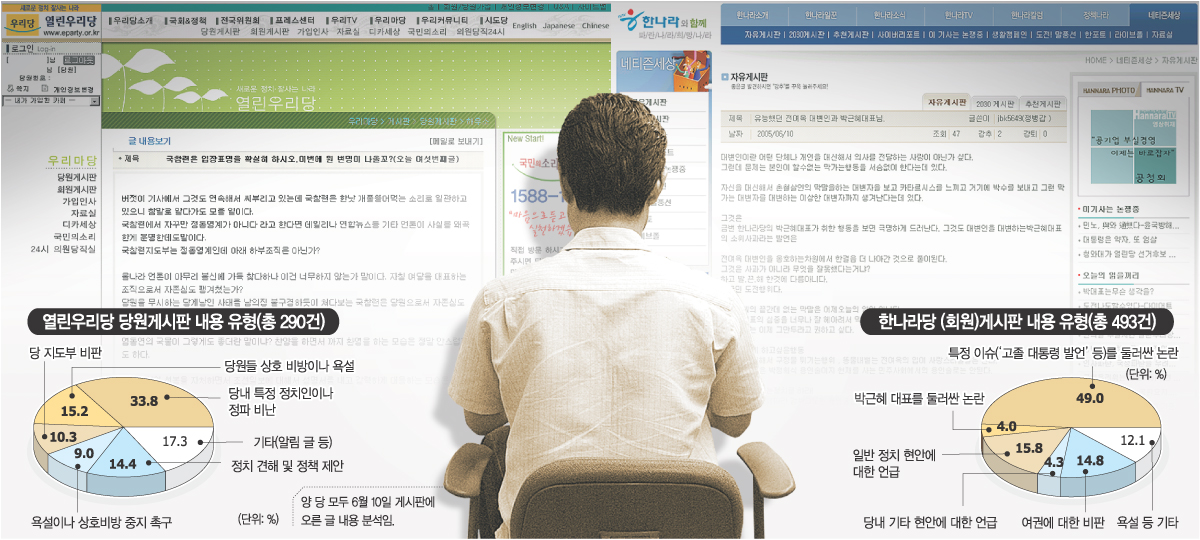 과연 그 실상이 어떤지 열린우리당과 한나라당 인터넷 홈페이지 게시판을 정밀 분석해 봤다.》
