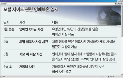 인터넷 포털 사이트 문제가 처음으로 지적된 것은 연예인의 확인되지 않은 개인 신상정보를 담은 ‘연예인 X파일’이 공개됐을 때.