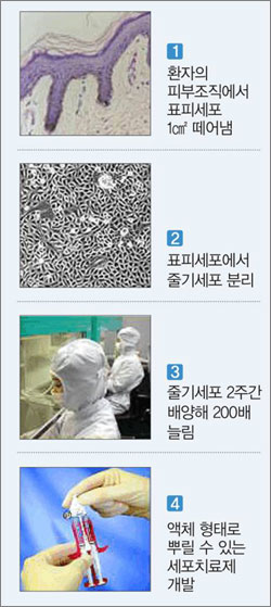 원자력실용화사업과 국가지정연구실사업의 지원을 받아 개발한 이 세포치료제는 환자 자신의 피부세포를 이용해 부작용이 거의 없는 게 특징이다.