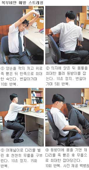 내근을 오래 한 남성 근로자일수록 복부비만이 많다. 활동량 부족으로 과잉 에너지가 쌓이는 탓도 있지만 또 다른 이유가 있다.