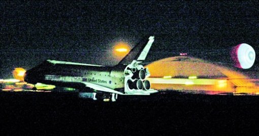 ‘터치다운(착륙)!’ 어둠이 채 가시지 않은 9일 오전 5시 11분(한국 시간 오후 9시 11분) 미국 우주왕복선 디스커버리호가 미 캘리포니아 주 모하비 사막의 에드워즈 공군기지에 착륙함으로써 지구 귀환을 성공적으로 마무리 지었다.