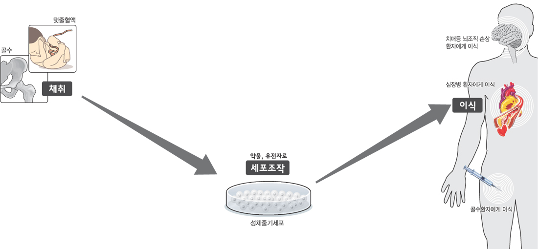 쉽게 말하자면 이 세포는 심장근육 세포로, 저 세포는 뇌혈관 세포로 미리 만들어놓고 주입하자는 것이다. 이렇게 되면 치료 효과는 지금보다 훨씬 높아진다.